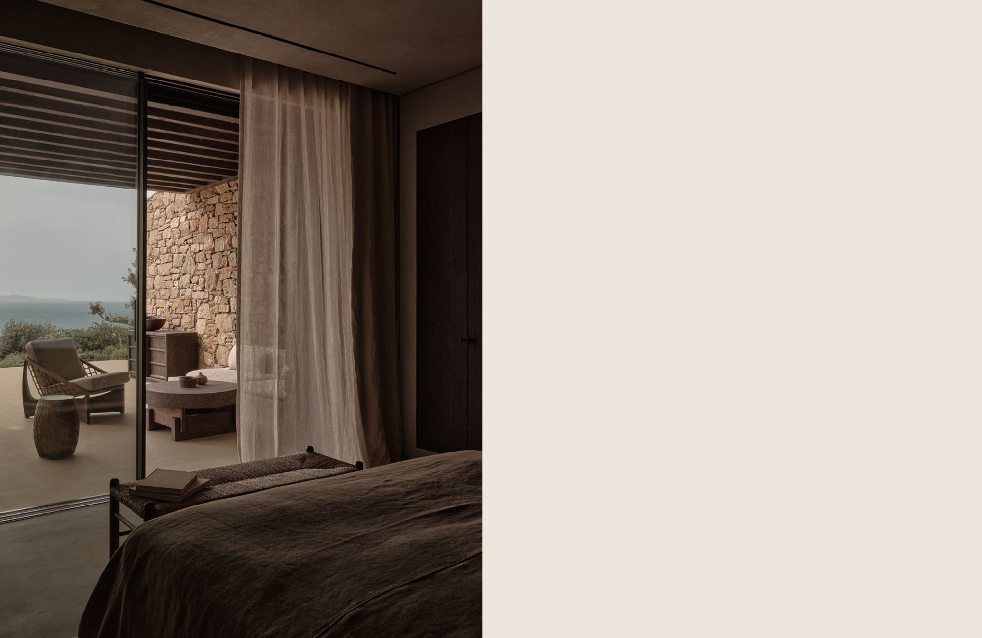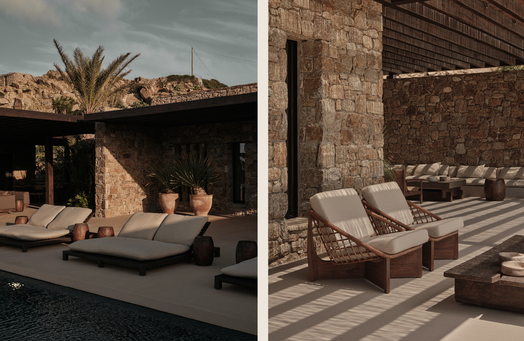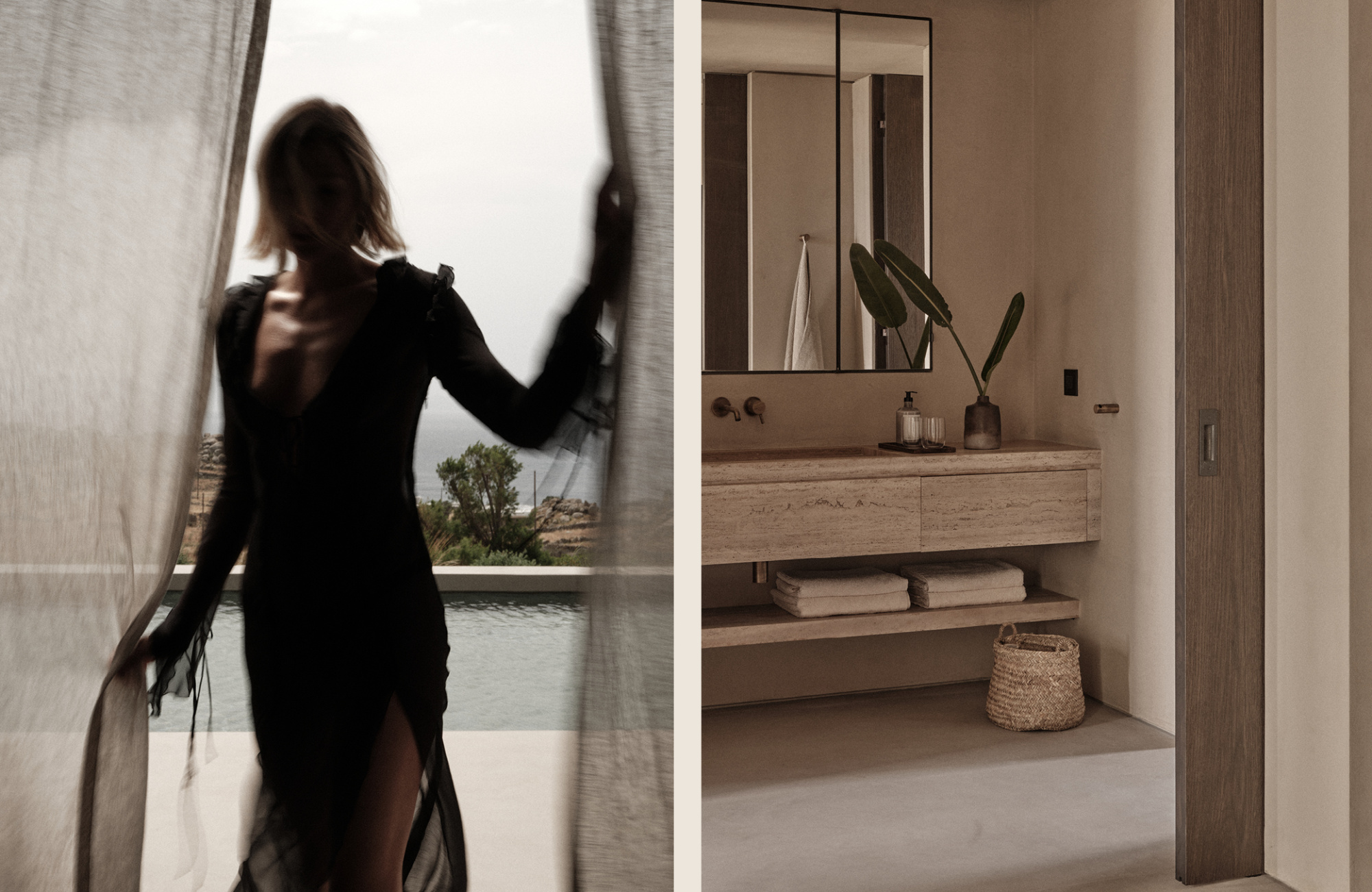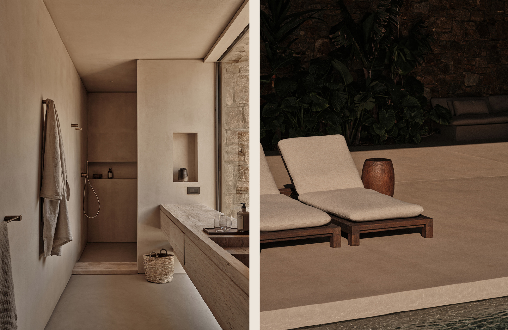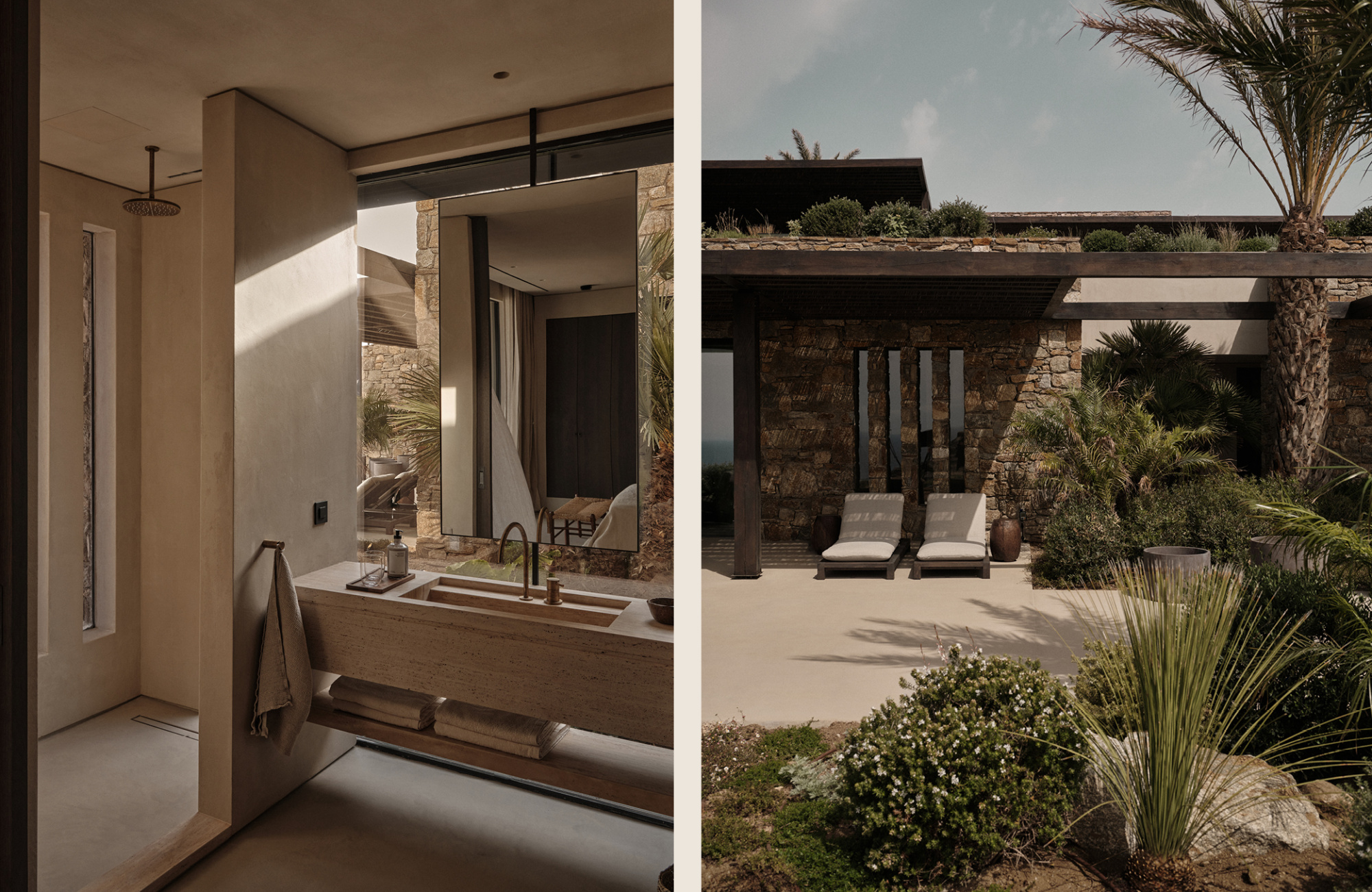 Conceived as an spin off of the multisensory experience at Scorpios Mykonos, the interior design seamlessly blends modern sophistication with Cycladic minimalism, creating streamlined spaces that are defined by clean lines and natural premium materials throughout.