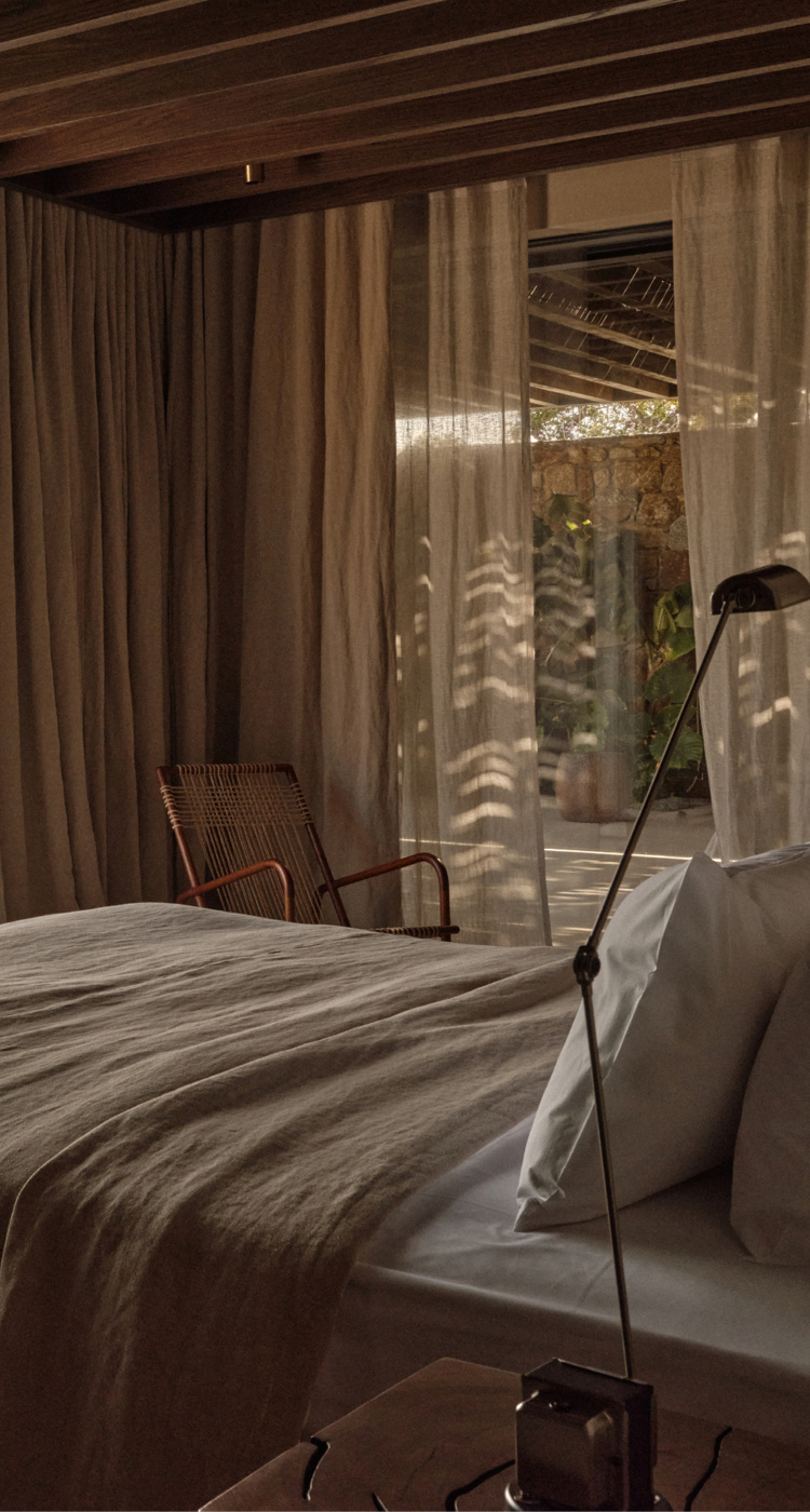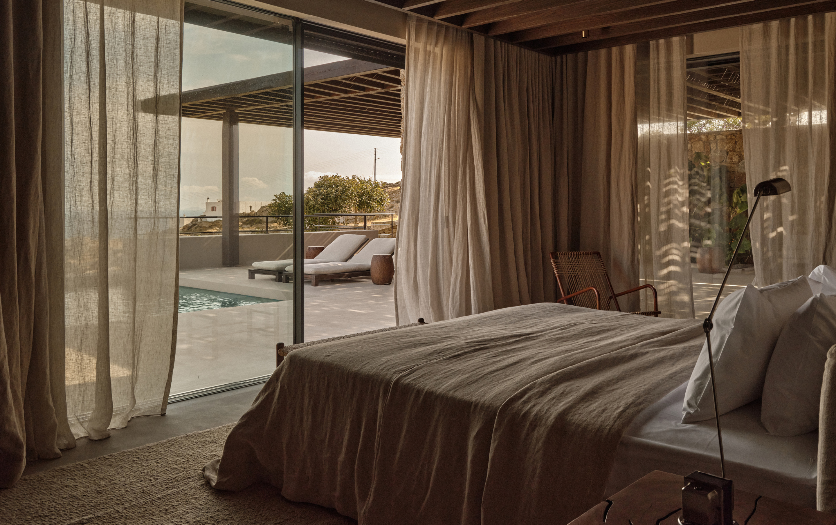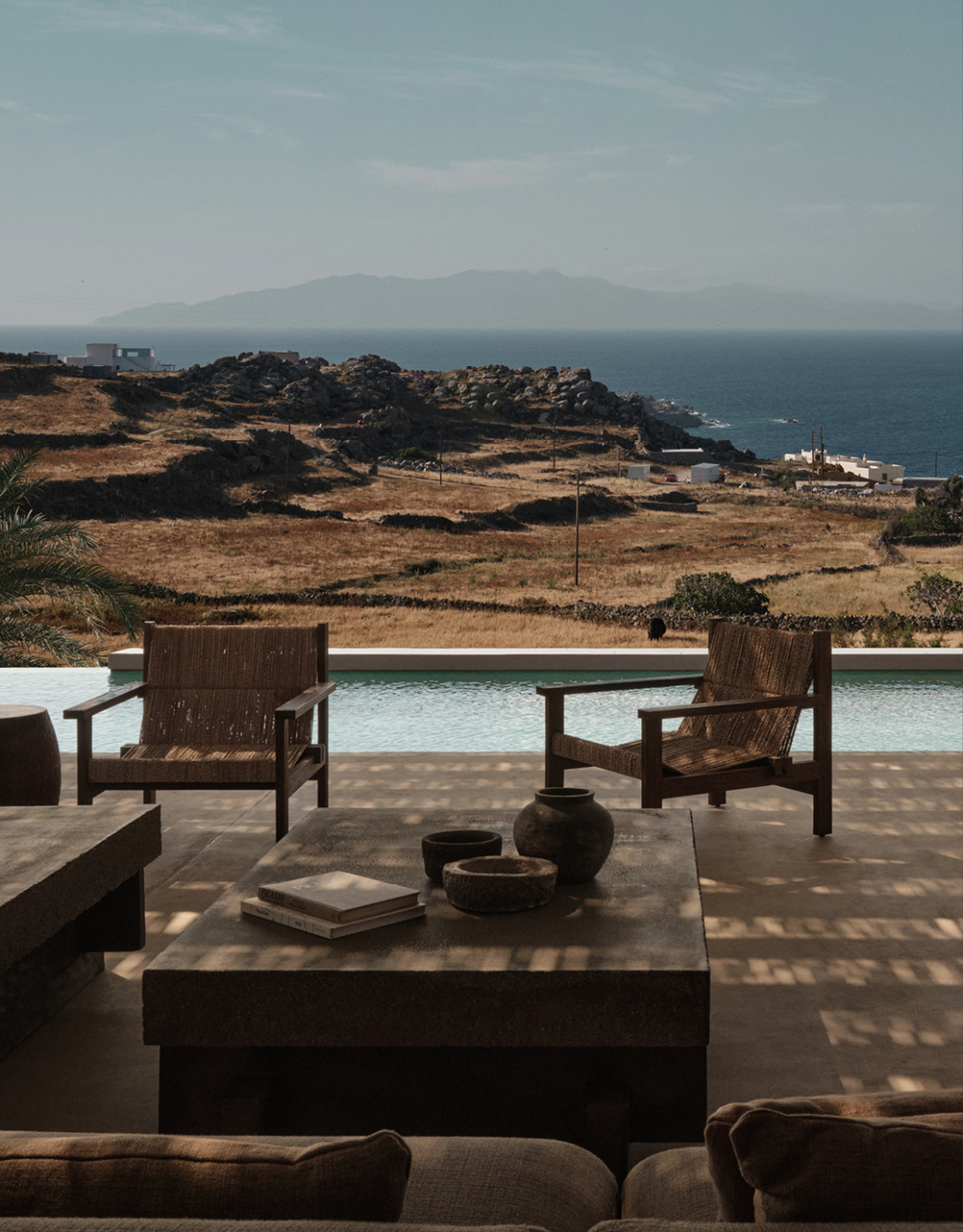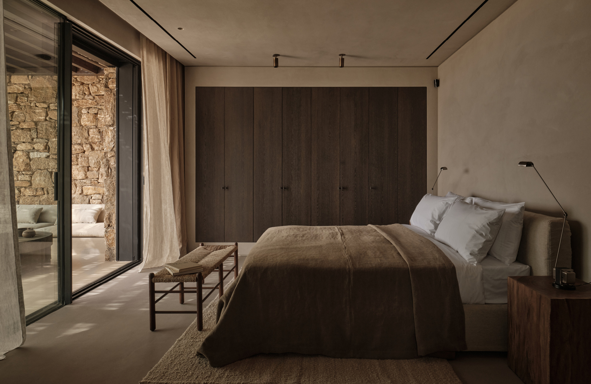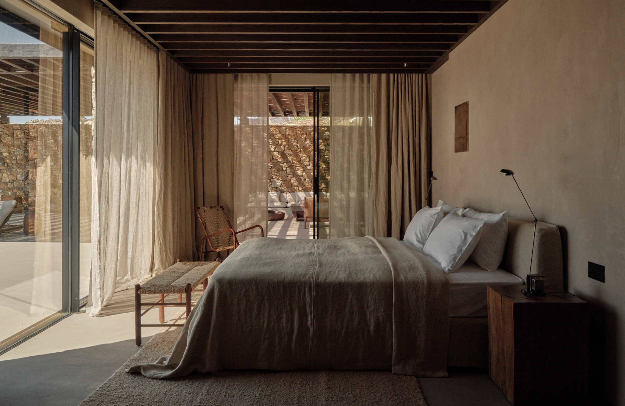 Conceived as an spin off of the multisensory experience at Scorpios Mykonos, the interior design seamlessly blends modern sophistication with Cycladic minimalism, creating streamlined spaces that are defined by clean lines and natural premium materials throughout.