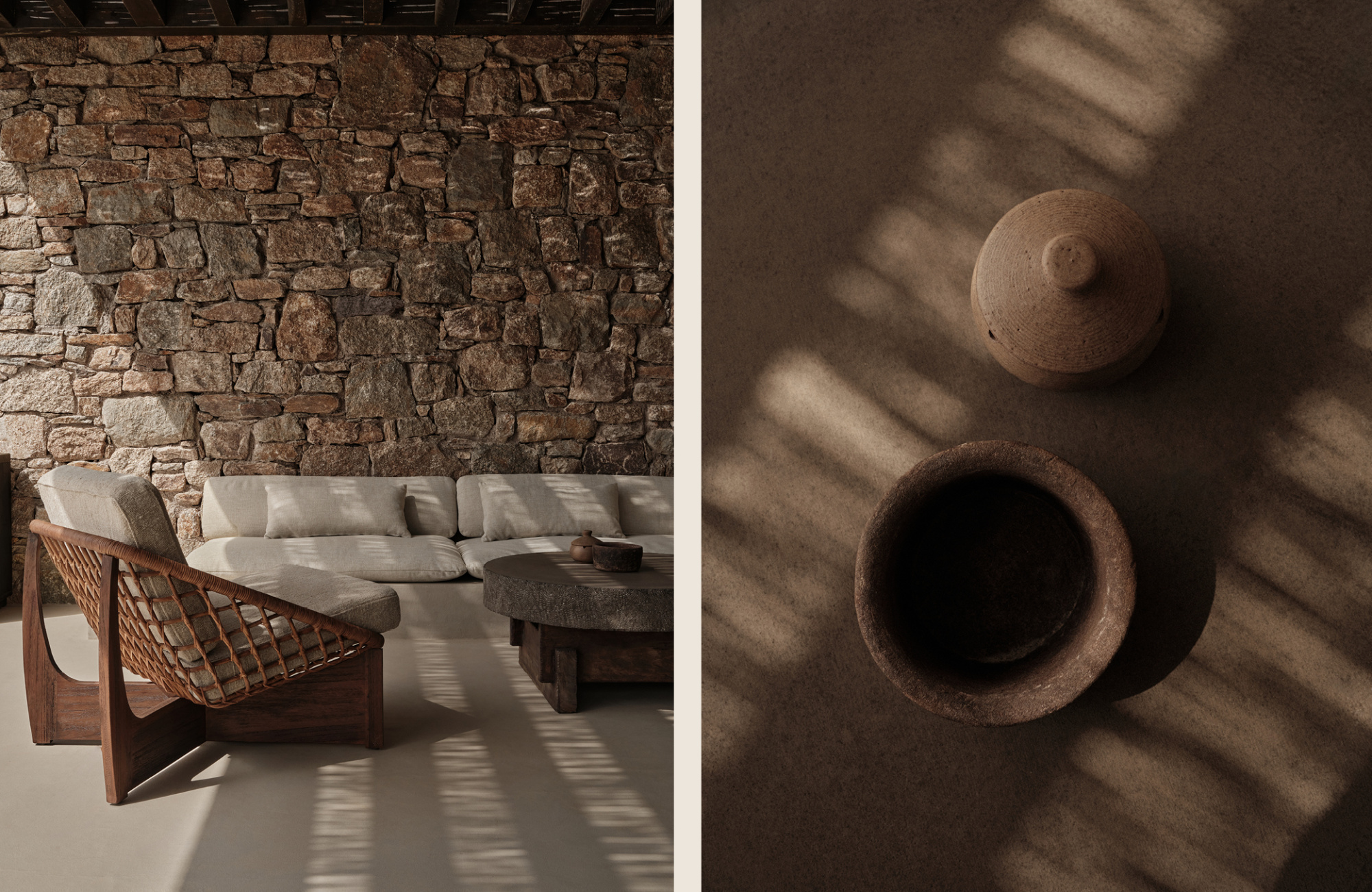 En Kyanó is built upon the idea of slow, laid-back summer living, it encourages mindful connection with family and friends, offering the freedom to exist peacefully in nature. Here, form follows emotion rather than function, as every space becomes another opportunity for rest, reflection and exploration.